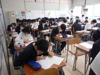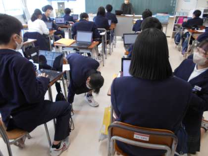 6限総合的な学習の時間、「14歳の挑戦」事前学習を行いました。挨拶・マナーに関するプリントに取り組んだり、インターネットで事業所調べを行ったりしていました。