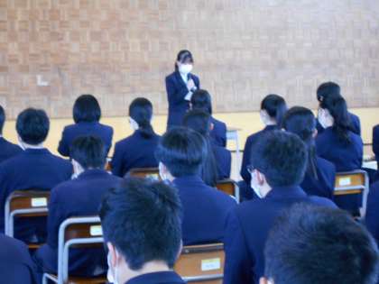 本校からは3年生徒1名が代表に選ばれており、今日の学年集会で英語スピーチを披露し、校長から激励を受けました。明日は堂々とスピーチしてくれることを期待します。