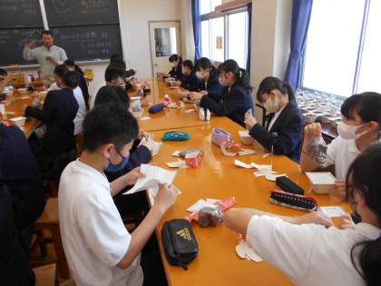 1組は初めて技術室へ。ミニトマトの種まきををしました。