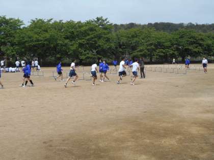 3年体育では、男子が1500m走、女子はハードルに取り組んでいました。