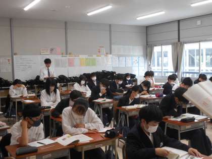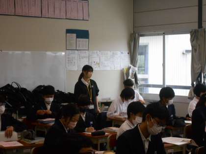 5月末頃から教育実習生3名(社会、理科、英語)が、6月中旬までの3週間の実習を行っています。実習生は自分の教科だけではなく様々な授業を参観したり、朝学活や給食など学級での活動を行ったりしています。