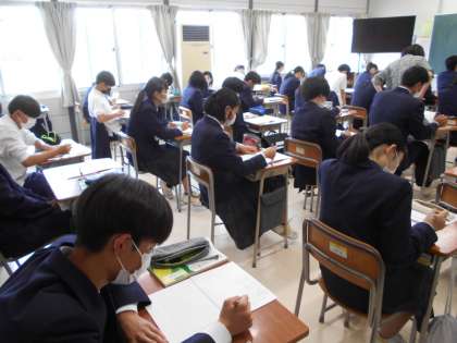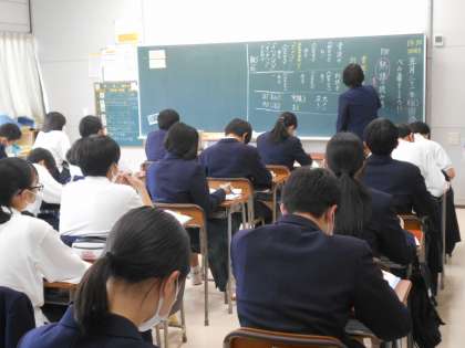 3年は1組が英語、2組と3組が国語の授業でした。いずれのクラスも生徒は落ち着いてノートに記入していました。