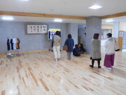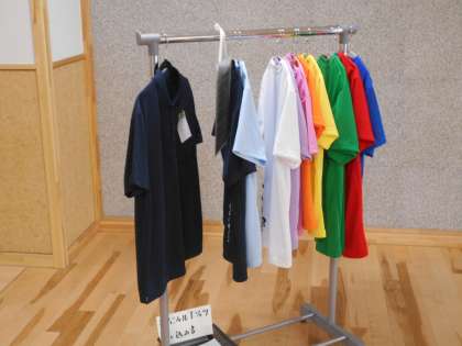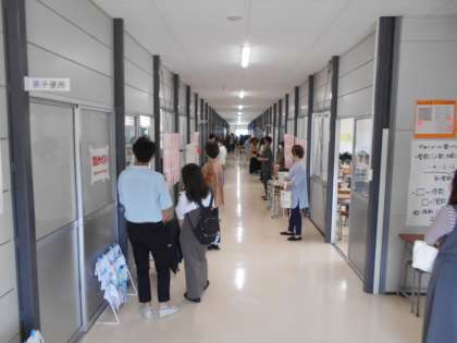 今日の授業公開には多くの保護者の皆様が来校しています。生徒玄関ホールでは、3年修学旅行での写真のスライドショー、西部中オフィシャルTシャツの見本展示等も行われました。