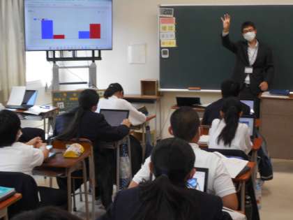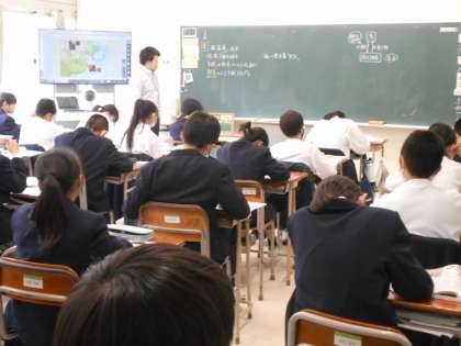 1年の4限は教科の授業でした。1組数学ではクロムブックを活用し、2組保健体育ではリレー練習に励んでいました。3組社会ではデジタル教科書を使って学習に取り組んでいました。