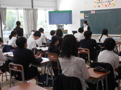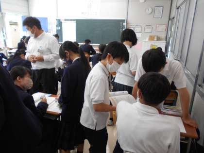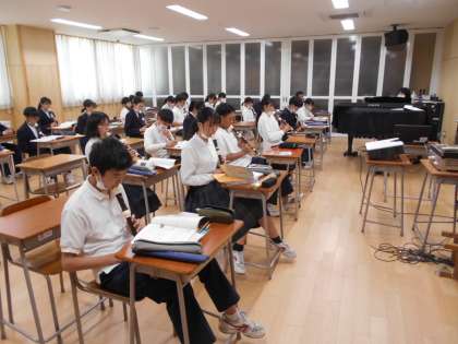2年生は1組音楽、2組数学、3組英語の学習です。保護者の方も多くいらしており、いつも以上に真剣です。