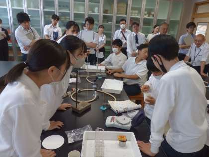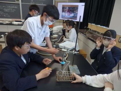 本校で市中教研理科部会(2年)が開かれました。2年1組で研究授業が行われ、市内中学校の理科の先生が参観しました。生徒たちは真剣な様子で実験に取り組んでいました。