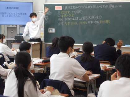 教育実習生では富山のレストラン(実際に存在する)を英語で紹介したり、享保の改革は成功したのか失敗だったのかを考えたりと工夫が見られ、楽しい雰囲気の授業でした。生徒たちも意欲的に取り組んでいました。