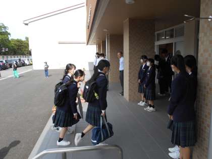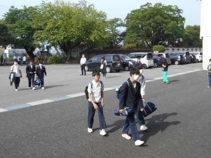 今朝も育成会や地域の方々が挨拶運動に来校されました。学校からは生徒会執行部が参加しました。