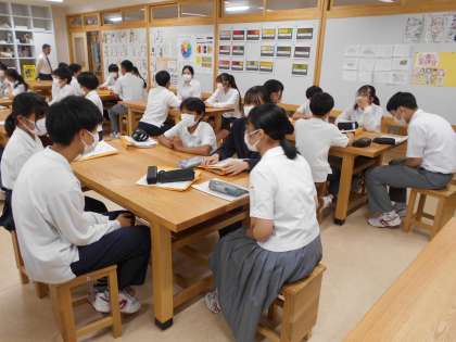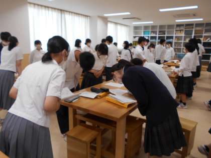 後半は、小グループに分かれ、富商生から話を聞いたり、直接指導を受けたりして学びました。高校生からの指導に、生徒たちは学ぶことが多かったようです。