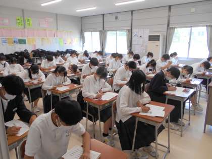 今日から3日間、期末考査です。答案用紙に向かう生徒たちはとても真剣な様子でした。静かな教室に、答えを記入するペンの音だけが響いていました。