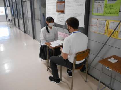 3年はALTの先生を相手に自己紹介スピーキングテストです。