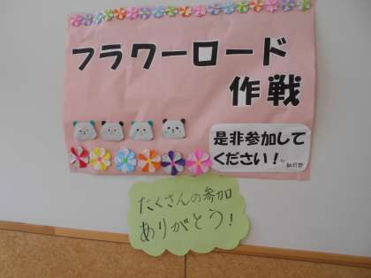昨日のフラワーロード作戦の掲示物には、参加者への感謝が添えられていました。