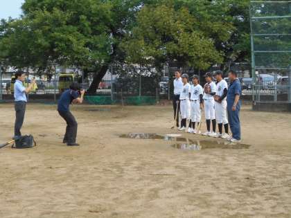 多くの3年生が部活動引退となり、放課後、卒業アルバム用の部活動集合写真を撮影しています。野球部と陸上競技部は思い出のグラウンドで、3年生部員が揃った最後の写真を撮影しました。