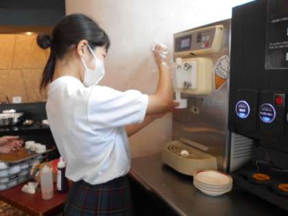 続々とおかわりをしています。デザートのソフトクリームは自分でつくります。