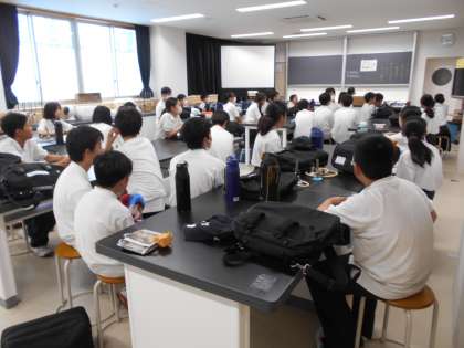 帰着式は管理棟1Fの学級ごとに集合した部屋で、放送を聞きながら行いました。