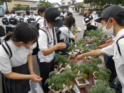 下校時は技術の授業で栽培しているミニトマトを家に持ち帰りました。夏休み中も家で継続して育てよう。(来週持ち帰る生徒もいます。)