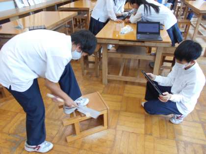 1学期もあとわずか。教科としては今学期最後の授業です。技術ではペアになってのこぎりびきの作業を撮影し、動作を確認しました。