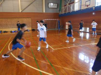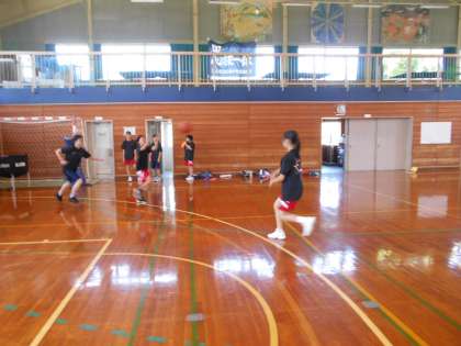 1時間に1回、日直の先生がグラウンド、体育館等のWBGTを測定しています。体育館の数値は28で厳重警戒の状態です。水分補給や休憩を入れながら活動しています。