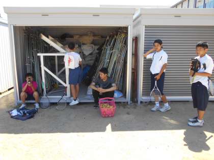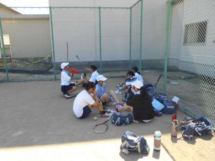 グラウンド(テニスコート付近)のWBGTは30で厳重警戒です。男女ソフトテニス部は日陰で休憩を取りながら活動していました。この後、WBGTは31(中止の基準)を超えると思われますが、外で活動する予定の部はありません。