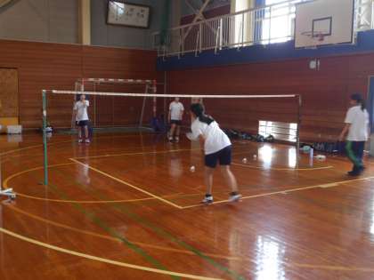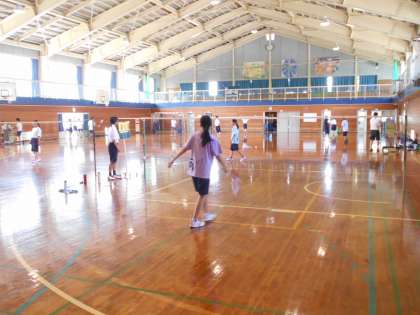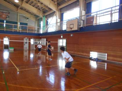 本日、屋外で活動する部活動は中止となりましたが、体育館では男女バドミントン部が暑い中がんばって活動していました。