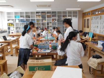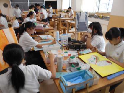 美術部はエアコンが効いた涼しい美術室で制作活動に没頭していました。