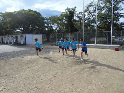 陸上競技部の様子です。まだ少し涼しいうちに集中的に練習しています。(8月31日撮影)