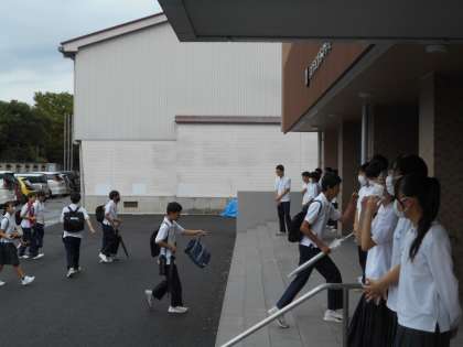 後期生徒会役員選挙が9月11日に行われます。今朝から生徒玄関で立候補者が選挙運動を行っています。登校する生徒に「清き1票をよろしくお願いします。」と呼びかけています。