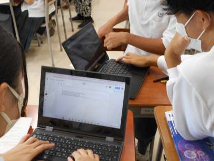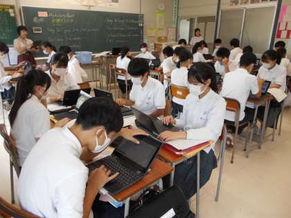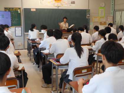 本日3限に3年1組で英語科の校内研究授業が行われました。「即興でスピーチしよう」というなかなか難しい課題でしたが、生徒は一生懸命取り組んでいました。