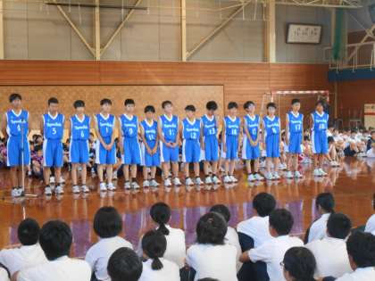 富山市新人大会壮行会が行われました。3年生が引退後に初めて迎える大会です。夏休みから練習してきた成果を十分に発揮して欲しいです。
