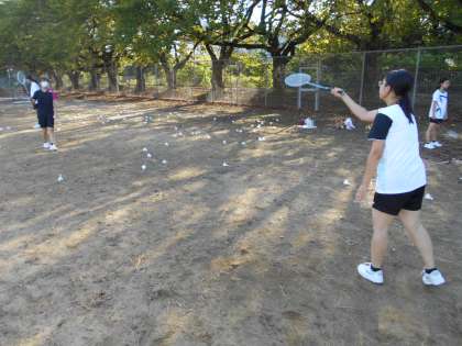 体育館が割り当っていない部は外で工夫して活動です。