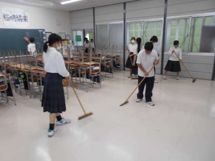 6限後、週2回実施の清掃を行いました。3日分のゴミをほうきで集め、汚れをぞうきんがけで拭き取りました。