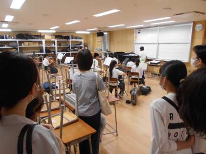 統一学校公開日の最後は部活動見学でした。6年生の皆さんはいろいろな場所で行われている活動を熱心に見学していました。