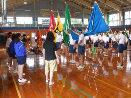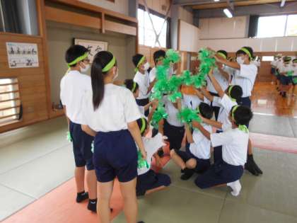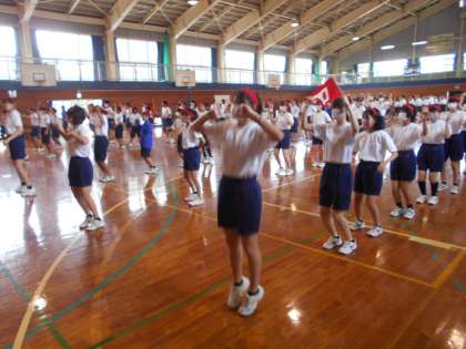 本日、体育大会予行の予定でしたが雨天だったので、体育館で流れや簡単な動きの確認をしました。
