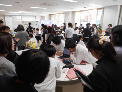 多くの先生方に見守られる、普段と違う雰囲気の授業に、子供たちはとまどいながらも、グループ内で考えを伝え合ったり、全体に発表したりと、しっかり授業に取り組んでいました。