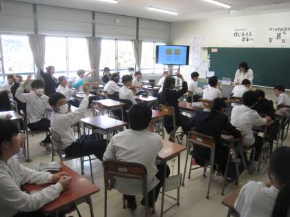 給食の選択献立決め。カロリーや栄養素などの説明をしっかり聞いて慎重に決めています。小さな事にも「楽しみ」を見付けている毎日です。