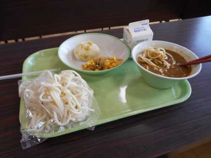 今年度初のソフト麺。うどんでもなく、パスタでもないソフト麺。カレーソースでいただきました。おいしかったです。