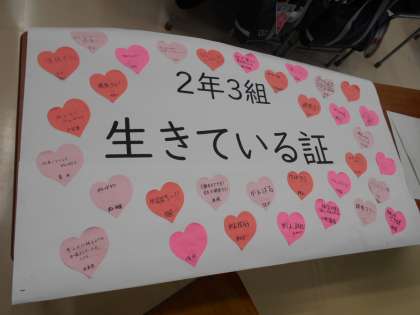 合唱コンクールまであと2日。学級で、学年で、団結しようと掲示物が増えてきました。
