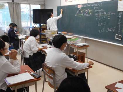 写真左から1組理科、2組社会、3組数学の様子
