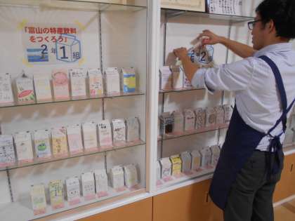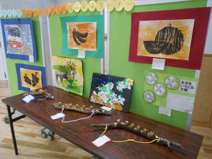 写真左から美術作品の展示、富山総合支援学校との作品交流コーナー、清掃の様子