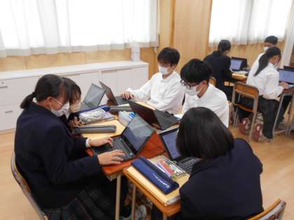 写真左から1年2組音楽、2年1組地理、3年3組理科の様子