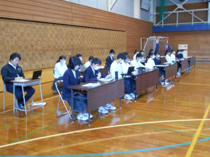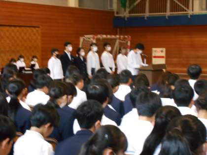 本日、生徒総会が行われ、令和5年度後期生徒会・専門委員会活動計画を審議・採決しました。