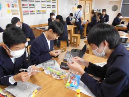 1組美術では、考えた「推しの蟲」の骨格を針金で作ったり、粘土で肉付けしたりしていました。