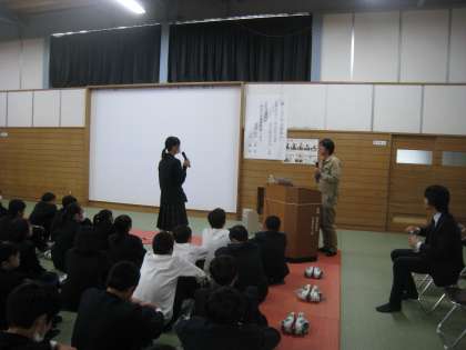 ユーモアを交えてのプレゼンテーションに、生徒はすっかり引き込まれました。生徒は終始真剣に聞けて、最後の質問コーナーでも鋭い質問が多く出ました。今日の講演をきっかけに、自分たちの将来を、そして今必要なことをしっかりと考えていくことでしょう。