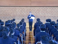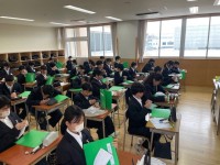 保健体育はバスケットボールに取り組んでいます。楽しい競技ですが、ボールは硬くて大きいので、ケガ等に十分注意。