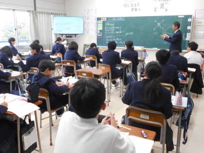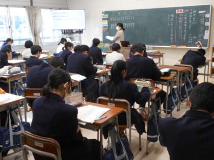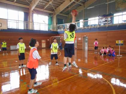 保健体育はバスケットボールに取り組んでいます。楽しい競技ですが、ボールは硬くて大きいので、ケガ等に十分注意。