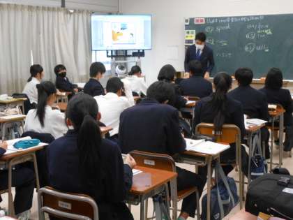 どの授業においても、大型提示装置を使い、分かりやすくなるように工夫されていました。