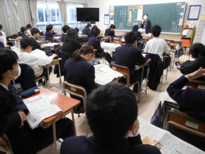 今日の北日本新聞朝刊16面に1年3組の「5大ニュース選んだよ」が記事として掲載されました。3組全員に新聞が配布され、朝学活で目を通していました。