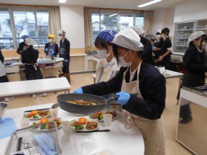 2組家庭では調理実習を行いました。「豚のしょうが焼き」上手にできました。美味しそうです。