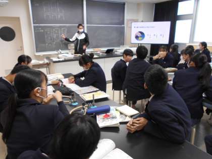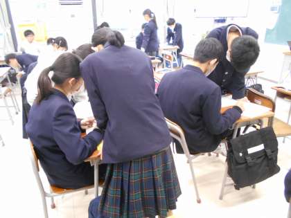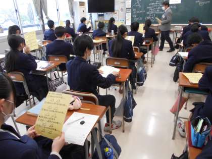 2組数学では、先生からのクリスマスプレゼント。合同条件がラミネートされた下敷き(?)。冬休みもこれを見て勉強してください。