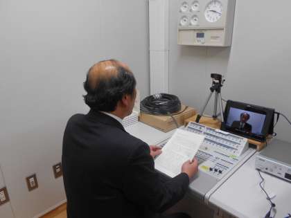 オンラインで終業式を行い、生徒たちは教室で校長先生の式辞を聴きました。